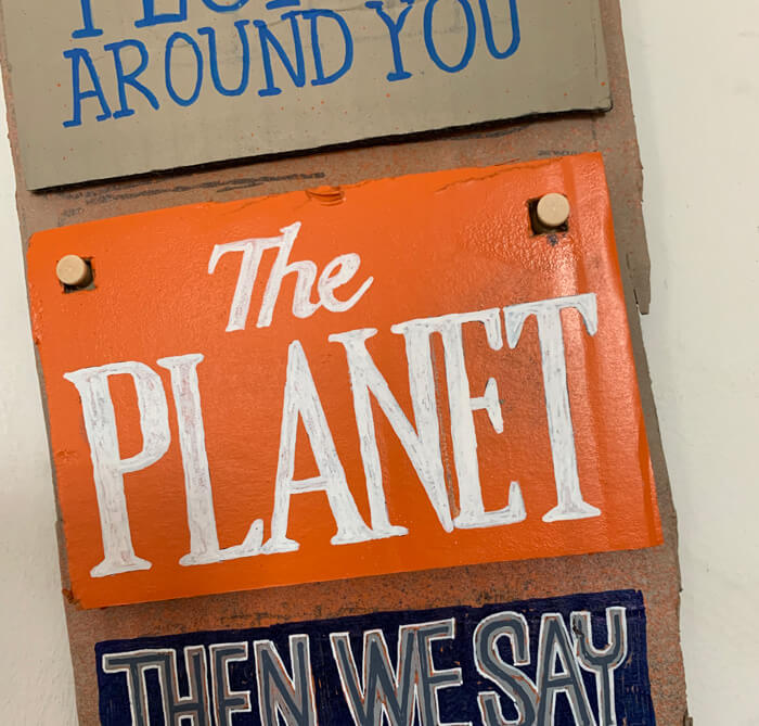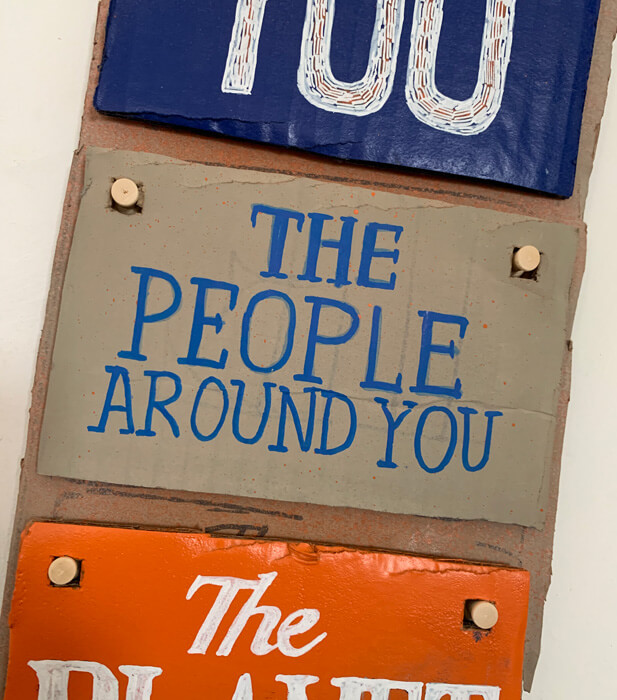 Grab a card tile and write or draw what’s important to you, hand it it at the counter.