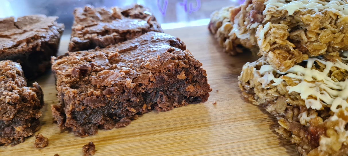 Mwynhewch ddetholiad o gacennau ffres wedi'u pobi fel Lemon Drizzle neu Ginger Crunch.