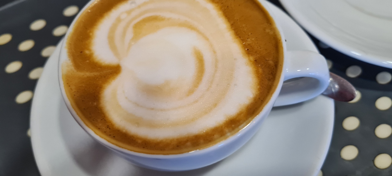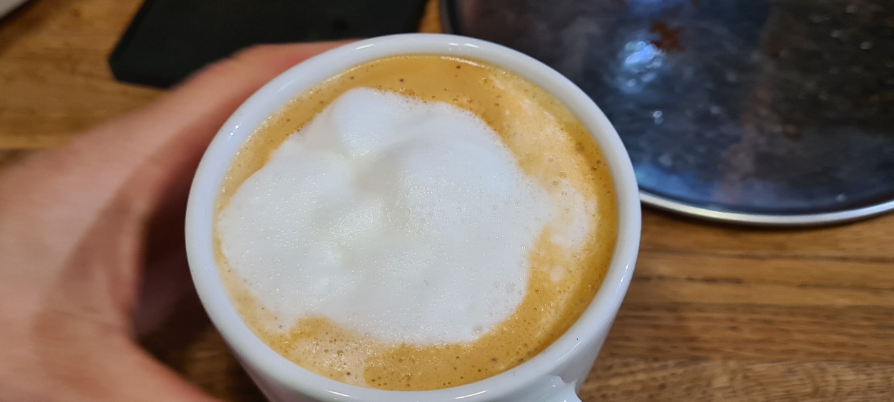 Espresso gyda llaeth wedi'i stemio (h.y. coffi llaethog)