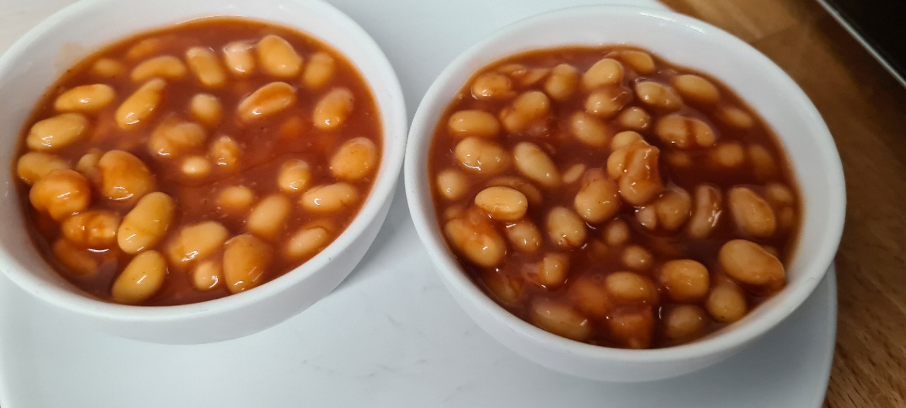 Selsig, bacwn, ffa, hash brown, tomatos, tost, dewis o wy.